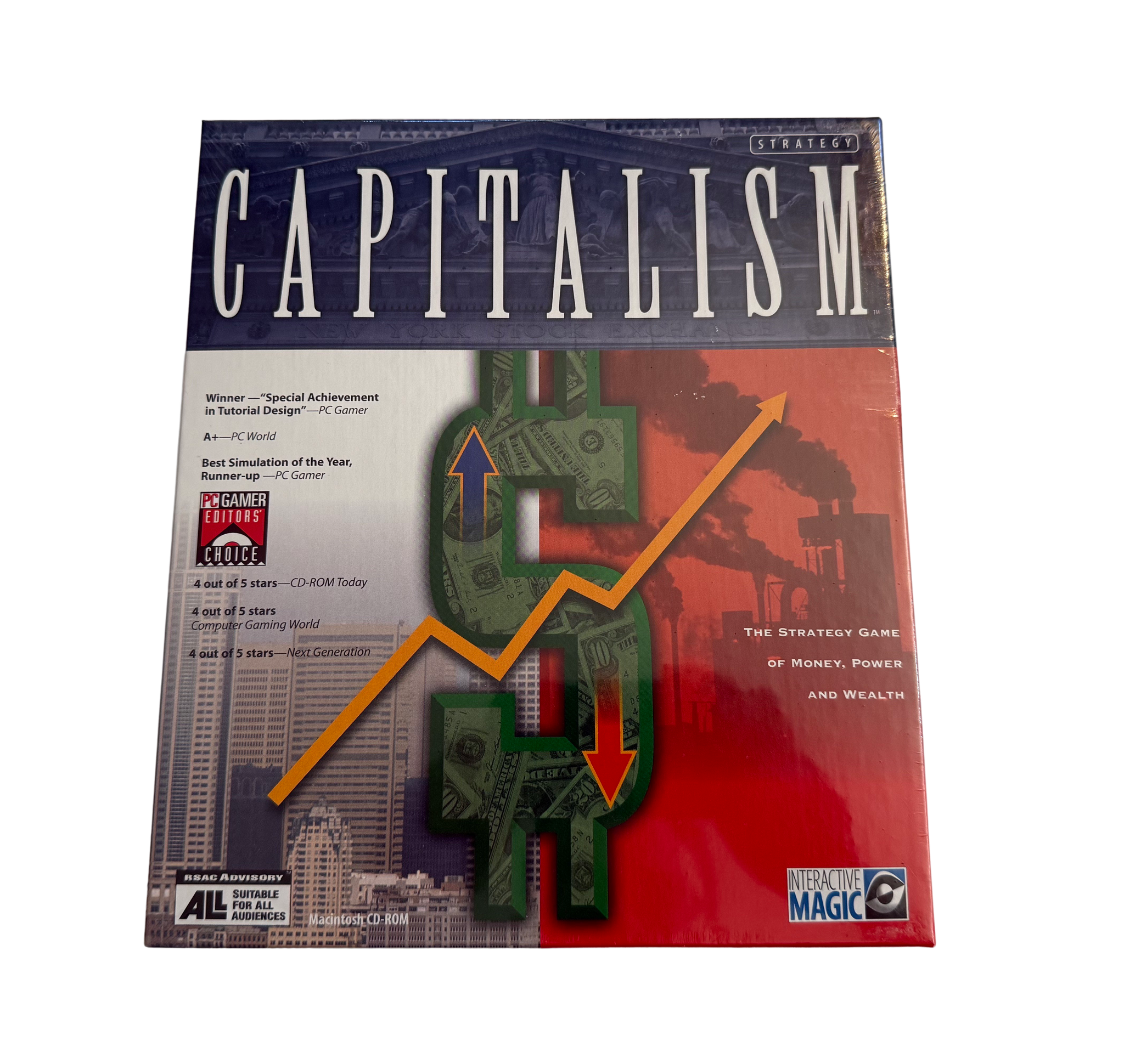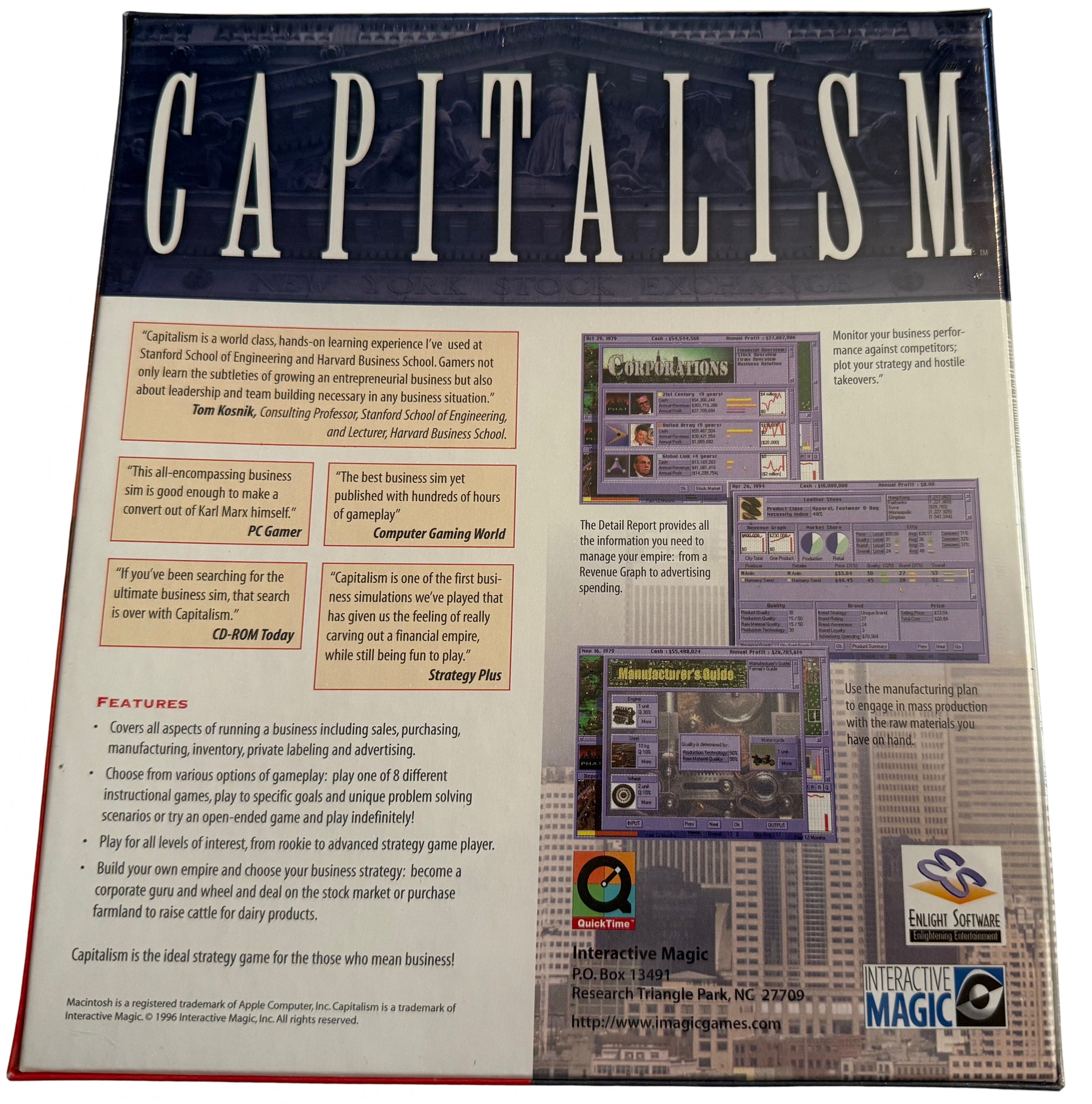 Capitalism by Interactive Magic is a classic business strategy simulator game. Capitalism is the right blend of economics, strategy, and logistics. This title is one of our founder Mark's personal favorites. This title is exceedingly difficult to find for Macintosh and we are offering a limited quantity of new old stock boxed versions for the discerning Mac user.